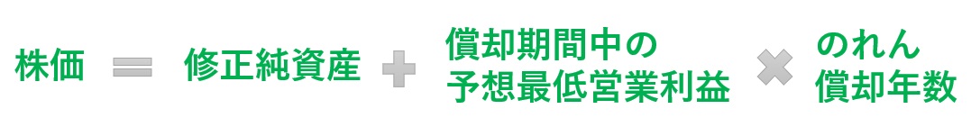 そのような事態を回避し、最低限、「のれんの償却期間中は営業利益を維持したい」と考えるのであれば、年買法の運用は以下の計算式になります。