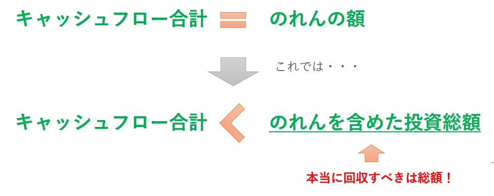 キャッシュフローを意識した年買法は、直感的な使いやすさはあるのですが、実は「この設定期間では、のれんしか回収できない」という不合理があります。