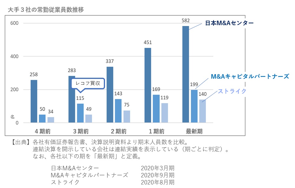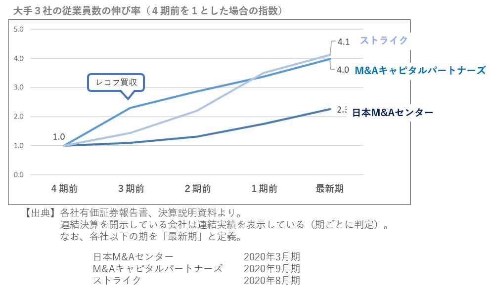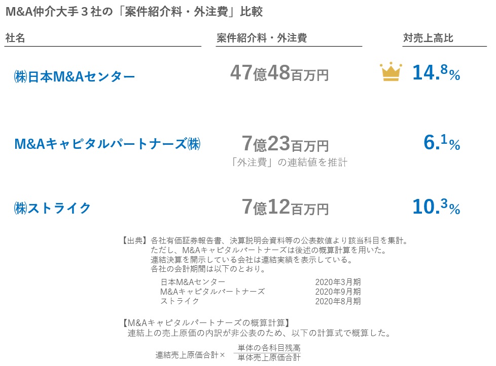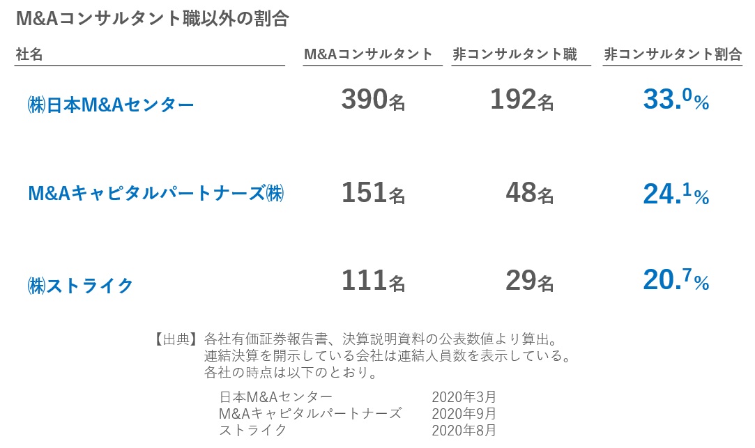 このような事情からも、1件当たり売上高はM&Aキャピタルが高く、ストライクが低いという理由が見えてくるように思います。