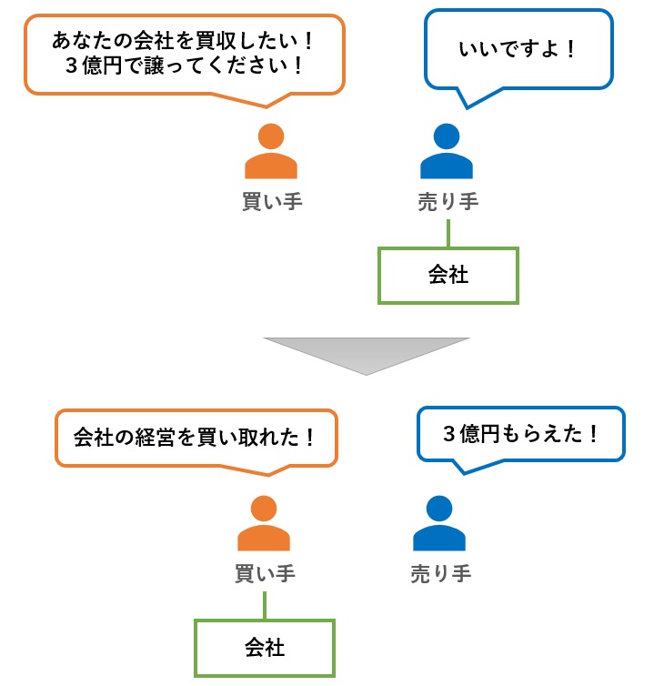普通のモノと同じように、会社や事業も売買することができます。つまり、会社や事業の「所有権」や「経営権」をお金で売り買いできるわけです(下図)。