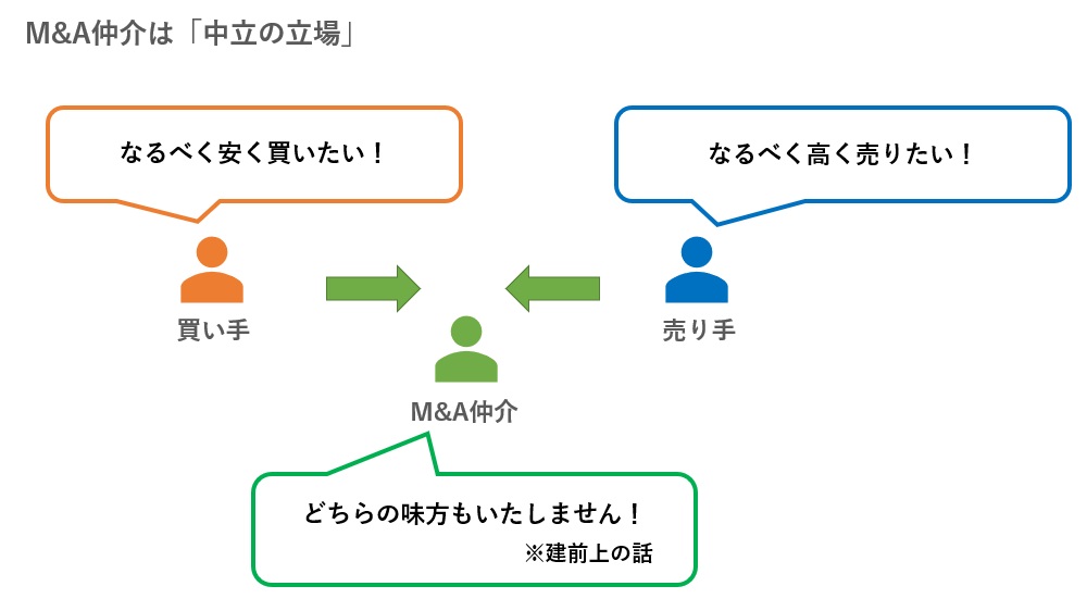 M&A仲介は、少なくとも表向きは、売り手にも買い手にも与しない「中立の立場」を謳っています。