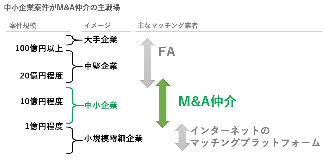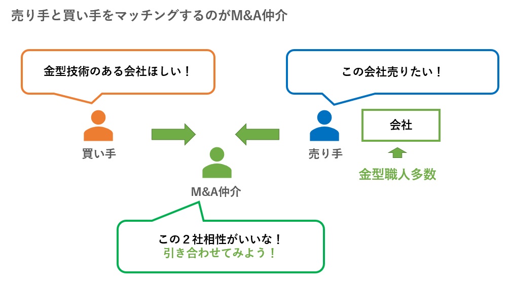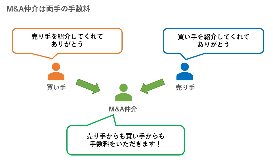 - M&A仲介とは、売り手と買い手をマッチングし、会社や事業の売買「成立」を目指す業者のこと。