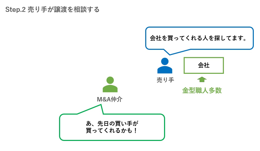 次に、売り手が仲介会社に「自分の会社を売りたい!」という譲渡希望や、自社がどんな会社なのかを伝えます(下図)。
