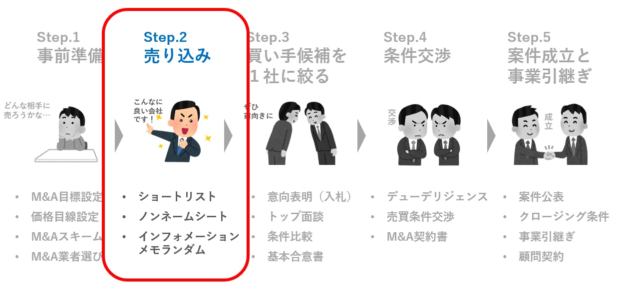 準備が整ったら、いよいよ買い手候補にアクセスし、自社の魅力を売り込んでいきます。
