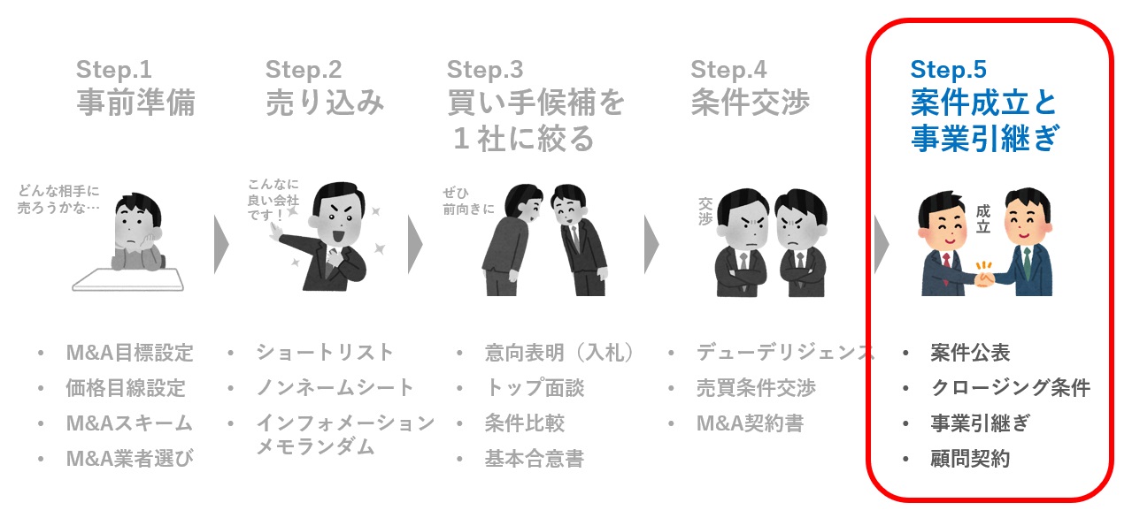 Step.5 M&Aを「成立」させ、事業引継ぎを行おう