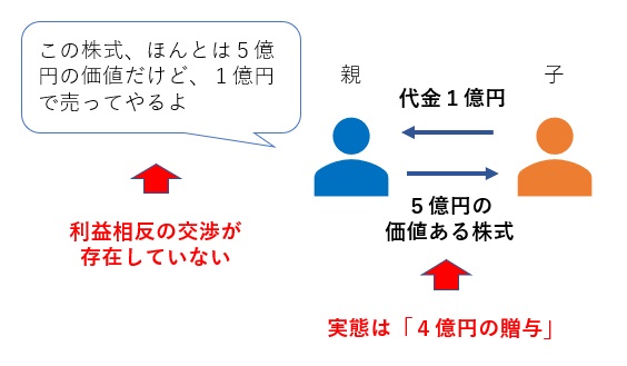 親族やグループ内の株式譲渡で気を付けることは、その取引実態が「贈与」や「寄附」と認定されないかどうかという点です。これは、「第三者間では成立しない価格で売買が成立した」という場合に問題となります。