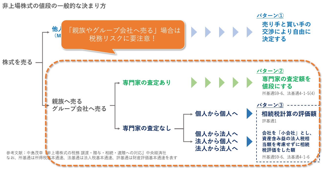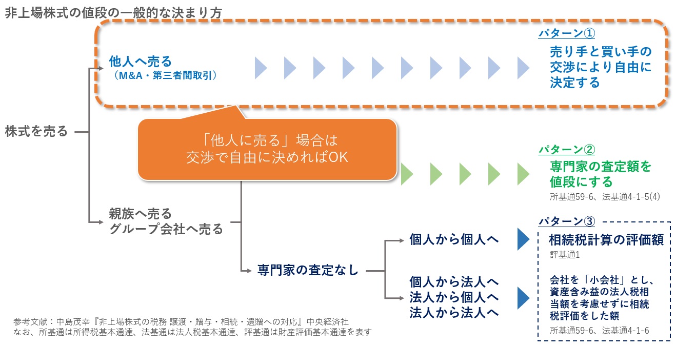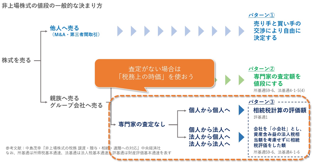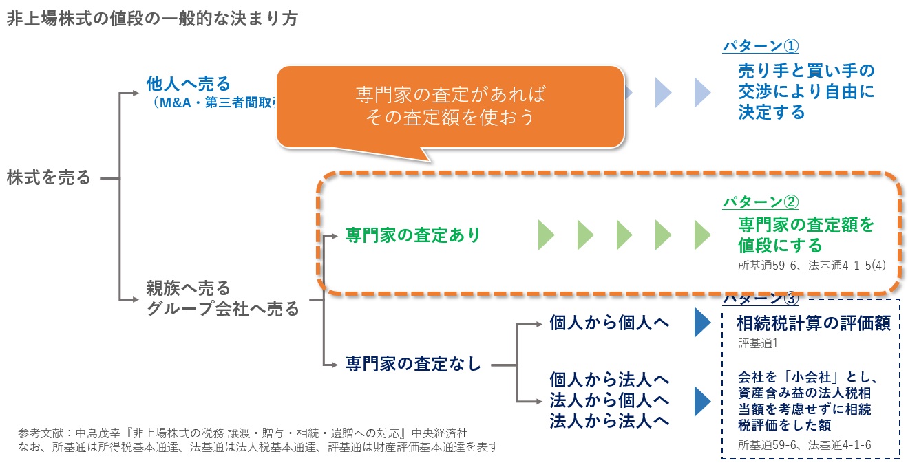 これらを踏まえて、非上場株式の譲渡金額の一般的な決まり方をまとめると、下図のとおりです(クリックで拡大)。