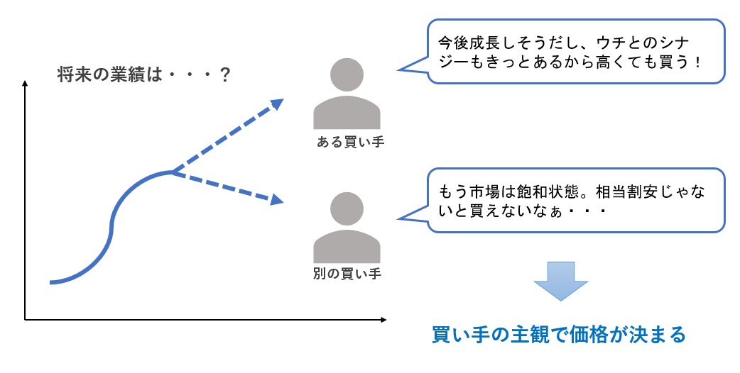 - この事業は伸びる(自分たちなら伸ばせる)と感じれば、割高でも買う