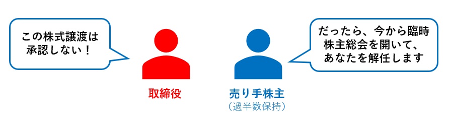 基本的には過半数さえあれば、株式譲渡の承認も取締役の選解任も可能です。