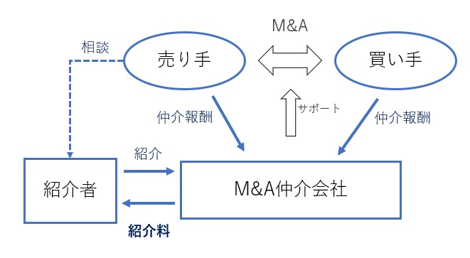 詳しくは「オススメなんてカネ次第?M&Aのウラで動く【紹介手数料】の話」という記事で紹介していますが、税理士がM&A仲介会社に売り手を紹介し、M&Aが成立した場合には、仲介手数料の何割かが、仲介会社から紹介者(税理士)に支払われます。