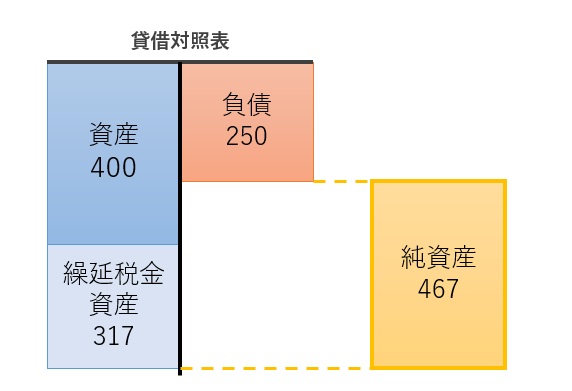 その結果、資産と負債の差額である純資産が、317百万円増加し、467百万円になります(下図)。
